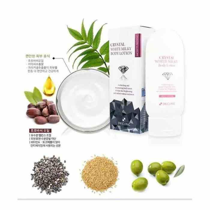 3W Clinic Body Lotion, Crystal White Body Lotion, Milky Body Lotion, Whitening Body Lotion, Moisturizing Body Lotion, Shea Butter Body Lotion, Body Lotion for Dry Skin, Skin Brightening Lotion.