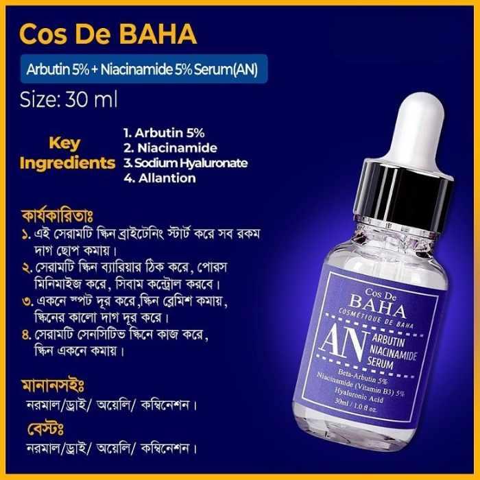 Cos De BAHA Arbutin Serum, Cos De BAHA Niacinamide Serum, Arbutin Niacinamide Serum, Dark Spot Removal Serum, Hyperpigmentation Treatment Serum, Brightening Serum, Melasma Serum, Oil Control Serum, Sensitive Skin Brightening Serum, Cos De BAHA AN Serum