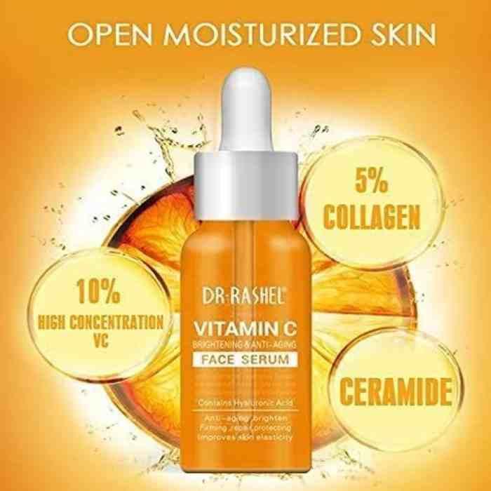 DR Rashel Vitamin C Face Serum একটি পাওয়ারফুল ব্রাইটনিং এবং অ্যান্টি-এজিং সিরাম যা Vitamin C ও Hyaluronic Acid এর মিশ্রণে তৈরি। এটি ত্বকে গভীর থেকে হাইড্রেশন জোগায়, কালো দাগ ও রঙের অসামঞ্জস্য কমায় এবং ত্বককে করে তোলে আরও উজ্জ্বল ও প্রাণবন্ত। এটি অয়েল ফ্রি এবং লাইটওয়েট হওয়ায় সব ধরনের ত্বকে সহজে ব্যবহারযোগ্য, বিশেষ করে ডাল ও নিস্তেজ ত্বকের জন্য এটি অত্যন্ত উপকারী।
