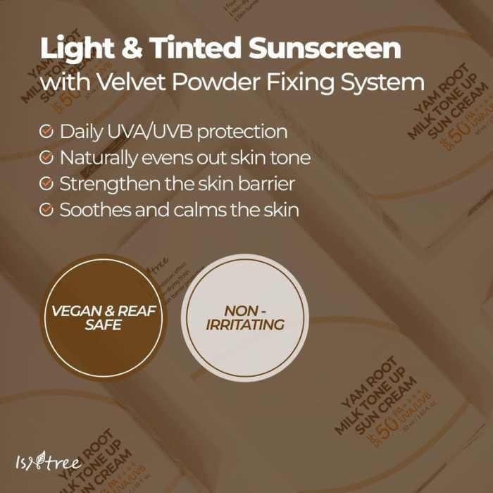 Isntree Yam Root Sun Cream, Isntree Tone Up Sun Cream, Yam Root Milk Sunscreen, Korean Sunscreen Brightening, Hydrating Sun Cream, SPF50 PA++++ Sunblock, Tone Up Cream with Niacinamide