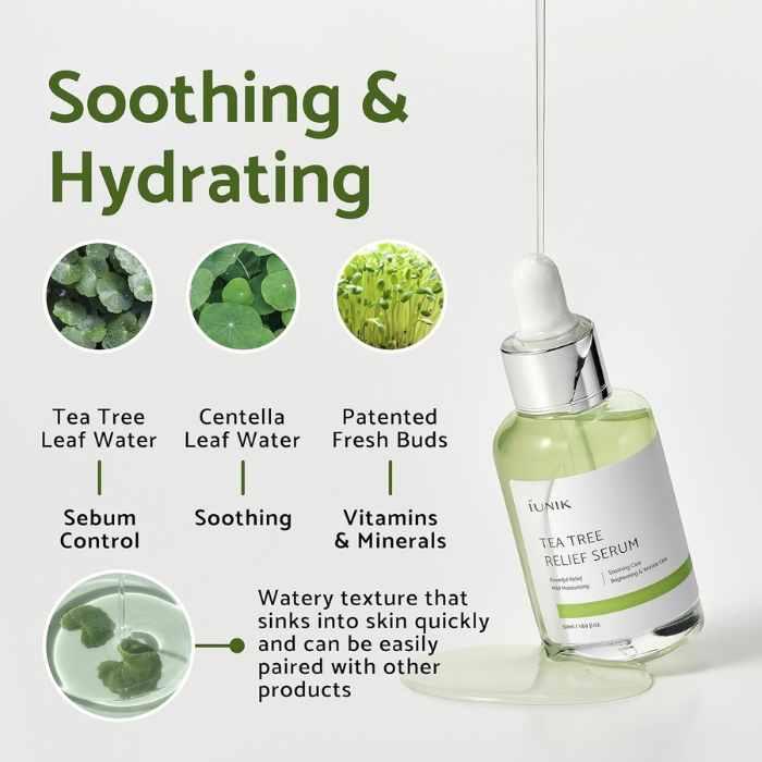 #iUNIK #TeaTreeReliefSerum #CentellaSkincare #AcneCare #SensitiveSkin #OilControl #SoothingSerum