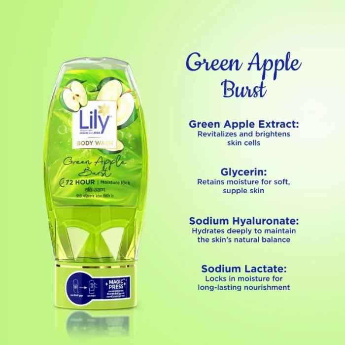 Lily Green Apple Burst Body Wash, Green Apple Body Wash, Lily Body Wash 250ml, Refreshing Body Wash, Hydrating Body Wash, Fruity Body Wash