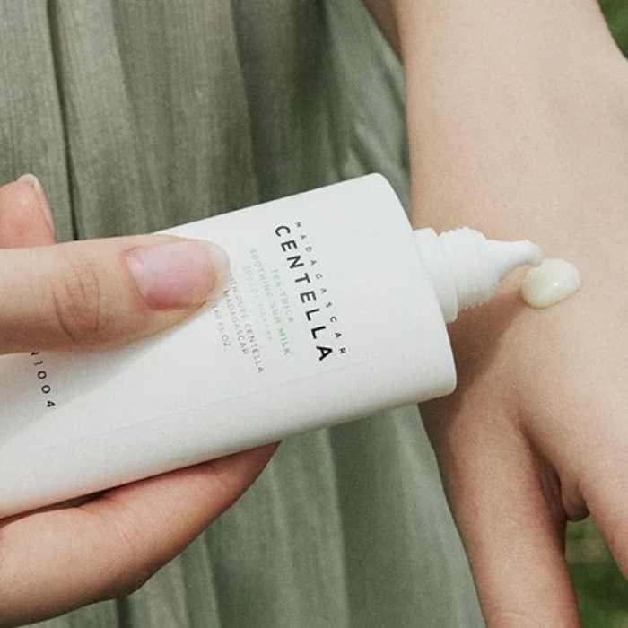 Centella Tea Trica Sun Milk, SKIN1004 Sunscreen, Soothing Sun Milk, Tea Tree Sunscreen, Acne Prone Skin Sunblock, Lightweight Non Sticky Sun Milk, SPF50 PA++++ Sun Cream