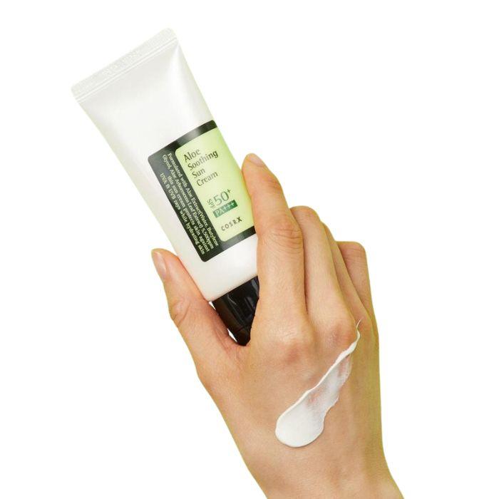 COSRX Aloe Sun Cream, SPF 50 PA+++ sunscreen, অ্যালোভেরা সানস্ক্রিন, হাইব্রিড সানস্ক্রিন, মেকআপ বেস sunscreen, সংবেদনশীল ত্বকের সানস্ক্রিন, নন-গ্রীস UV protector
