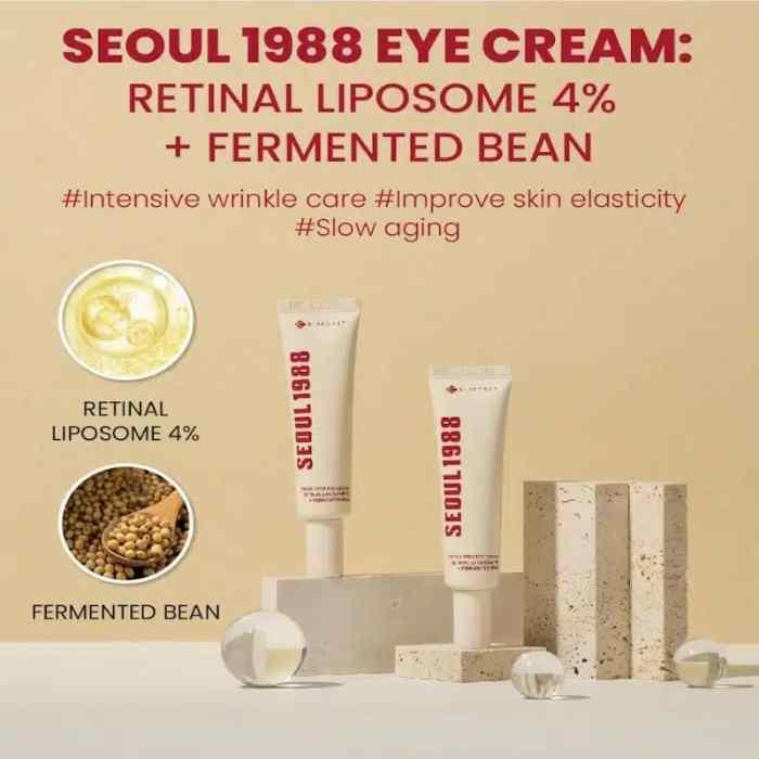 KSECRET SEOUL 1988 Eye Cream একটি হাই-পারফরমেন্স আই ট্রিটমেন্ট, যা বিশেষভাবে চোখের চারপাশের সূক্ষ্ম ত্বকের জন্য তৈরি। এতে থাকা 4% Retinal Liposome ত্বকের বয়সের ছাপ হ্রাস করে এবং Fermented Bean Extract গভীর পুষ্টি জোগায়। নিয়মিত ব্যবহারে এটি চোখের নিচের কালো দাগ, ফাইন লাইন ও ফোলাভাব হ্রাস করে এবং চোখের চারপাশকে করে তোলে মসৃণ, উজ্জ্বল ও তারুণ্যদীপ্ত।