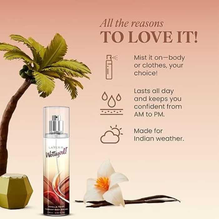 Layer’r Wottagirl Vanilla Twist, Layer r Body Spray Bangladesh, Vanilla Perfumed Body Spray, Long Lasting Body Mist, Wottagirl Body Spray Bangladesh, Sweet Vanilla Body Spray